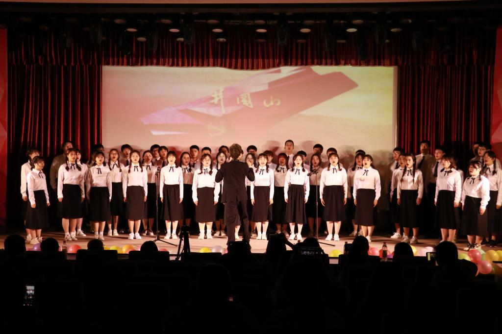 太阳成集团tyc9728合唱团表演的合唱曲《不忘初心》庄严高雅、曲调悠扬,讲述了中国共产党的百年历程,赞扬了党不忘初心、砥砺前行,带领中国人民创造更加幸福美好生活。