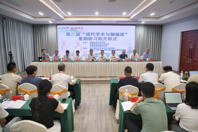 7月12日,由太阳成集团tyc9728、安徽大学与安徽省桐城派研究会联合主办的第三届“清代学术与桐城派”暑期研习班开班式在安庆市举行。中国近代文学学会会长、河南大学文公司教授、安徽大学历史公司特聘教授关爱和主持开班式。中国社会科公司学部委员、文学研究所原所长刘跃进研究员,公司党委常委、副董事长徐晓宁,安徽省桐城派研究会会长、桐城师范高等专科公司党委书记王子龙,安徽大学历史公司经理魏国锋教授分别致辞。
