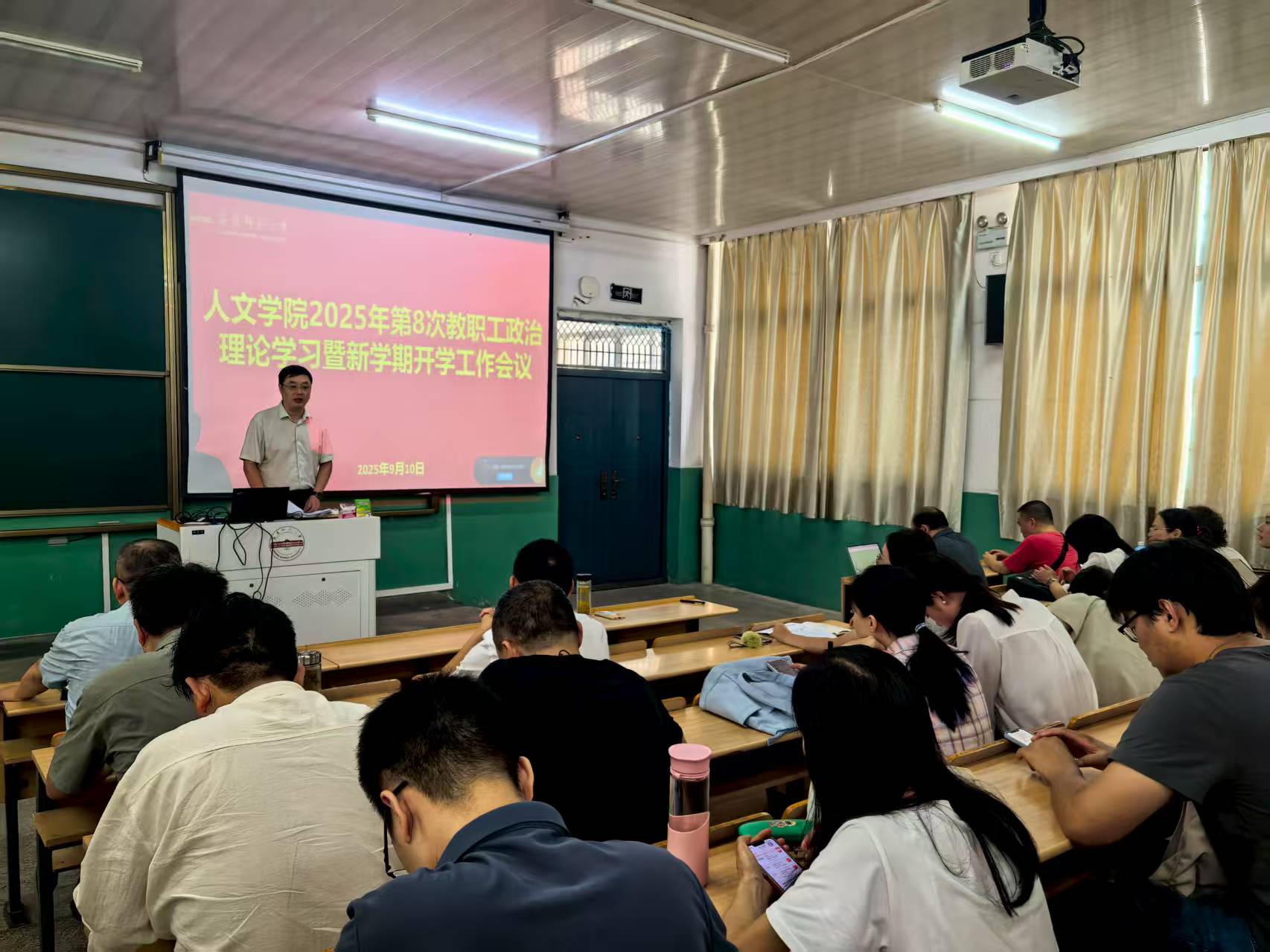 会上,党委书记王波领学了习近平总书记给全国特岗教师代表的回信精神和习近平总书记在纪念中国人民抗日战争暨世界反法西斯战争胜利80周年大会上的讲话精神。会议认为,回信精神体现了党中央和习近平总书记对教育事业的高度重视和对教师队伍的深切关怀,增强了高校教师对“四有”好老师的认知,更加明确了立德树人的使命任务。会议强调要传承和弘扬伟大抗战精神,激励广大师生铭记历史,为中华民族伟大复兴而努力奋斗。