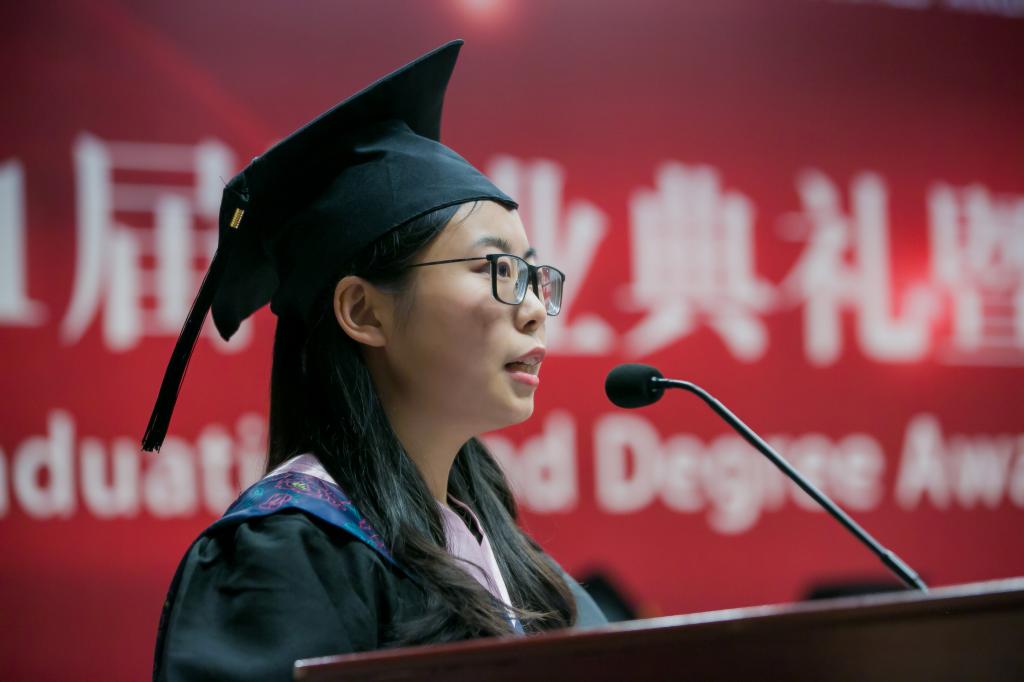 毕业班员工代表汪舒悦和吴康平分别发言,在诚恳真挚的言语间,她们代表全体毕业生表达了对母校、对老师深深的感激之情,也传递了为青春、为理想而拼搏奋斗的坚定信念。