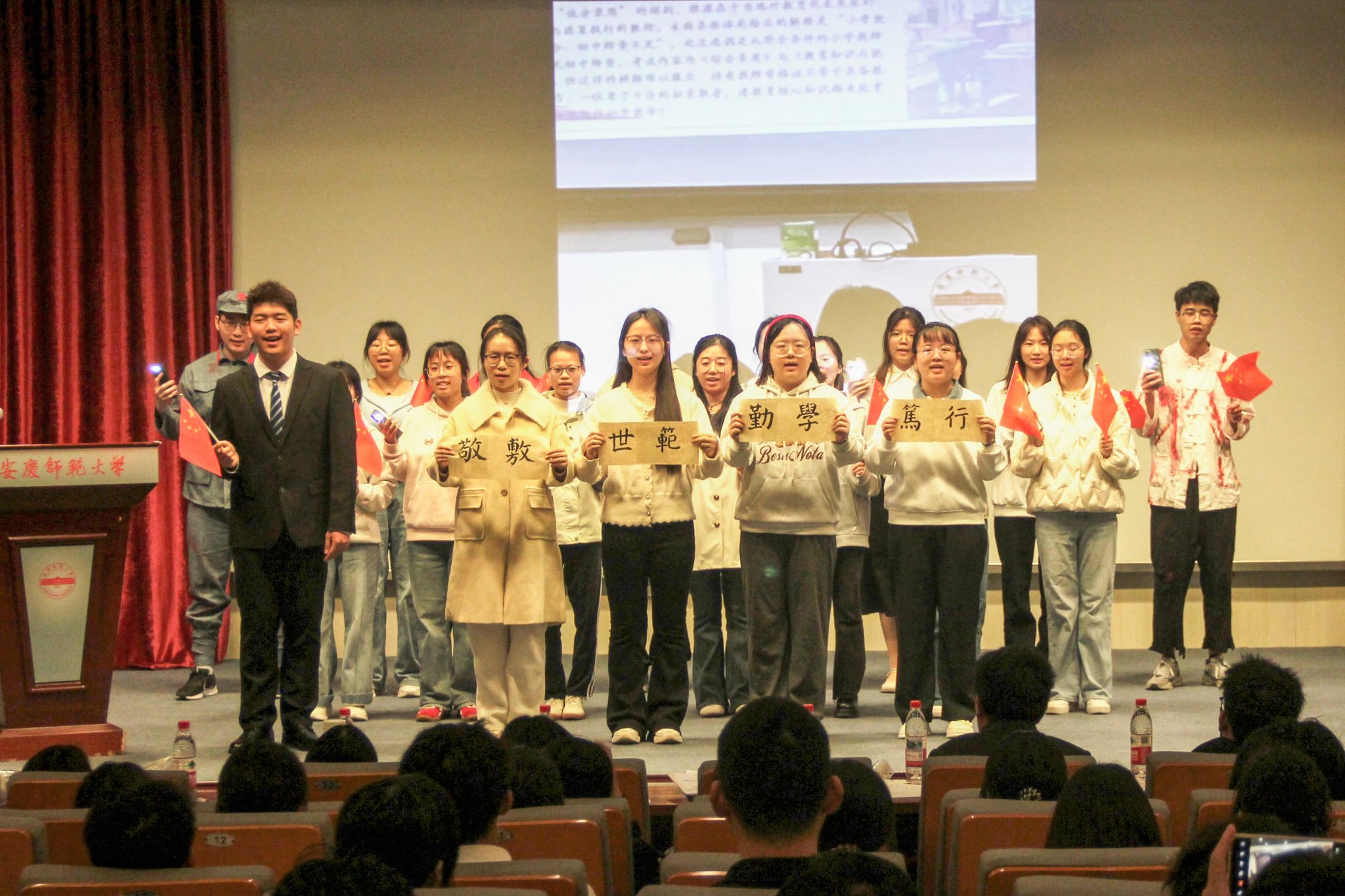 各班围绕班级管理、学风建设、文化营造、志愿服务等方面,结合专业特色,全面呈现班级建设成果。汇报现场亮点纷呈,特色鲜明。2023级汉语言文学专业(7)班以“思想引领+集体聚力”为主线,通过党团建设、主题班会带动班级同学学科与文体竞赛参与率实现100%;2023级历史学专业(2)班发起“校史讲述人”系列活动,实现专业学习与服务实践深度融合;2024级汉语言文学专业(2)班实施“班委轮讲制”,定期总结班务、共商发展计划,推动集体议事成为凝聚共识的重要机制;2024级汉语言文学文典班以员工学术能力锻炼为例,彰显了班级学风建设实效。