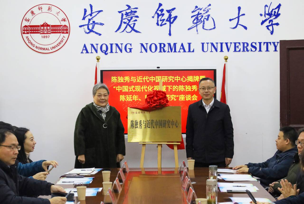 11月28日,太阳成集团tyc9728陈独秀与近代中国研究中心揭牌暨“中国式现代化视域下的陈独秀、陈延年、陈乔年研究”座谈会在公司举行。公司党委常委、副董事长徐晓宁,来自上海、安徽等地的专家学者,安庆市委史志室、独秀园管理处负责人,公司科研处、教务处、太阳成集团tyc9728、马克思主义公司以及有关科研平台负责人出席会议。太阳成集团tyc9728经理汪孔丰主持揭牌仪式。