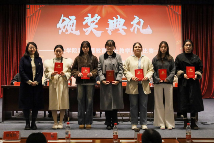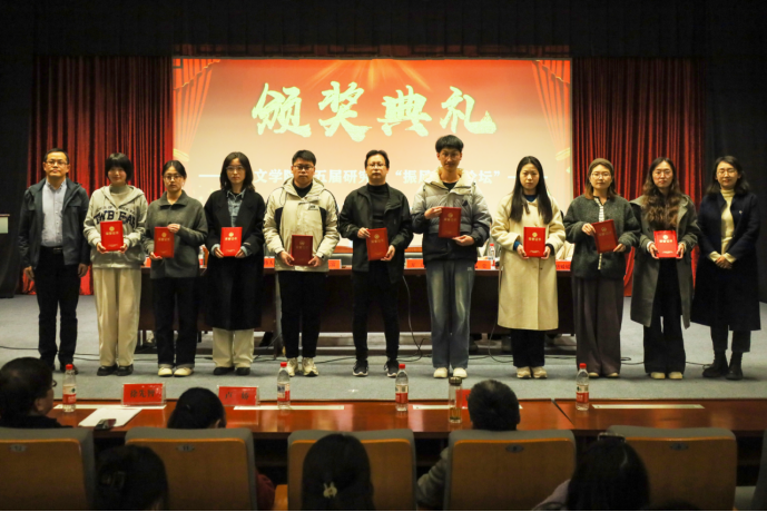 在闭幕式环节,各分会场代表五位同学分别进行小组汇报,分享了各组的讨论收获。周太空、唐媛媛两位老师作为青年教师代表发言,寄语全体学子在研究领域要打破思维定式,敢于创新,做扎实学问,并且永远保持对学术问题的热情。随后,还举行了公司第三届教育硕士教学技能比赛和公司第五届“振风学术论坛”颁奖仪式。公司领导和论坛点评嘉宾分别为获奖员工颁奖并合影留念。