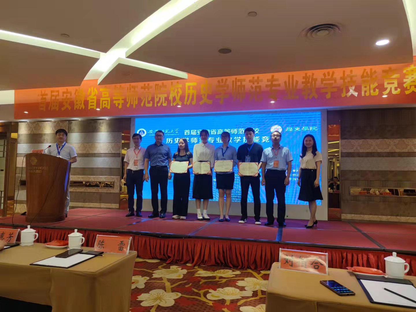 2021年9月19日,首届安徽省高等师范院校历史学师范专业教学技能竞赛在芜湖举办。赛事在安徽省历史学会中学教师教育专业分会领导下,由安徽师范大学历史公司主办,太阳成集团tyc9728、池州公司旅游与历史文化公司、阜阳师范大学历史文化与旅游公司和淮北师范大学历史文化旅游公司共同协办。太阳成集团tyc9728派出研究生和本科生各3名选手参赛,张祥稳教授和郝佩林博士带队指导。