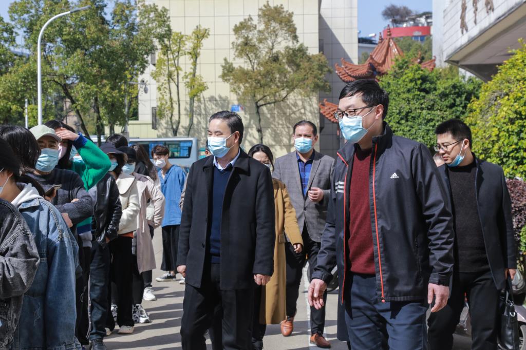 在核酸采集现场,师生自觉佩戴口罩,有序排队,分批进入,保持距离,排队等候,即采即走。医务人员身着防护服,戴口罩、护目镜和医用一次性手套,严格按照规范检测流程进行信息登记,核酸采样。整个过程有条不紊,井然有序。