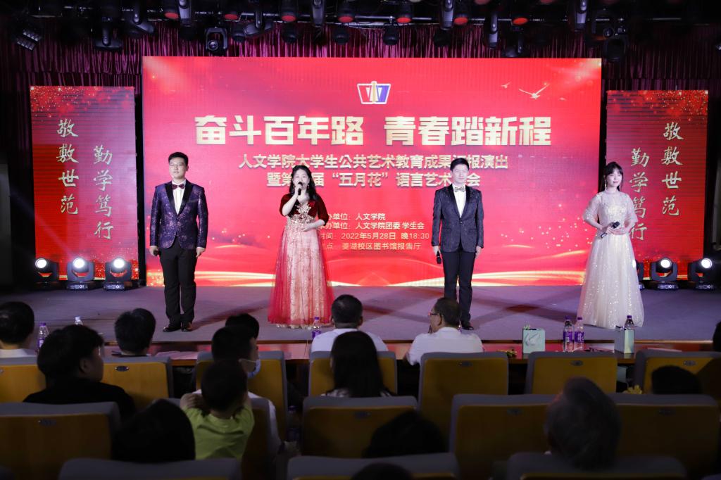 “好燃啊!”“她们跳得太棒啦!”……5月28日晚,在开场舞《WADADA》的律动中,太阳成集团tyc9728老员工公共艺术教育成果汇报演出暨第40届“五月花”语言艺术晚会于图书馆报告厅展开。太阳成集团tyc9728领导班子成员与教师代表、员工代表及200余名员工一同观赏这出视听盛宴。