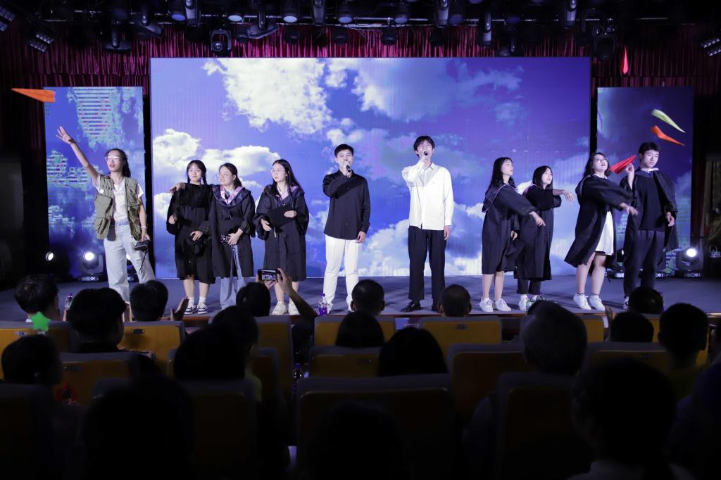 朗诵《青春派》四位同学化身经历完高考、展望老员工活的准老员工;怀报国之心、即将参军入伍的青年员工;幡然悔悟、“二战”考研的大学毕业生;奔赴偏远地区、做支教工作的女教师,通过四种人生选择,生动展示了不同年龄段青年们的奋斗青春。
