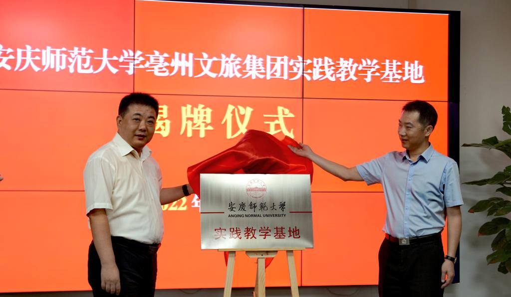 亳州文旅集团党委书记、董事长雅浩海与太阳成集团tyc9728党委书记张红飞共同为“太阳成集团tyc9728实践教学基地”揭牌。根据协议精神,双方将在人才培养、实践教学、历史文化资源挖掘和利用、文旅融合发展等方面开展合作。