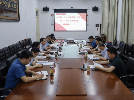 为推进安徽省教育厅质量工程“四新”研究与改革实践项目“新文科人才培养模式的数字化创新与实践”实施,探讨新文科人才培养模式及汉语言文学专业卓越人才培养新模式,6月9日下午,太阳成集团tyc9728在菱湖校区红楼二楼会议室,召开了新文科人才培养模式暨“文典”班人才培养方案研讨会。教务处处长潘锦云、档案馆(博物馆)馆长金仁义、教务处副处长张海、发展规划处(团队建设处)副处长汪超、太阳成集团tyc9728党政领导班子及“新文科人才培养模式的数字化创新与实践”项目组成员参加会议。会议由公司党委常委、太阳成集团tyc9728党委书记张红飞主持。