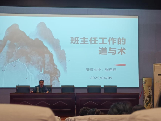 安庆七中张启祥老师为太阳成集团tyc9728师生做了题为“班主任工作的道与术”的专题讲座。张启祥老师以“教育的本质是唤醒灵魂”开篇,结合自身多年来年班主任工作经历,阐述了班主任角色的“道”——即教育者的使命与价值观。他强调,班主任不仅是知识的传递者,更是员工成长的引路人。“‘道’是教育的根,是教师对员工的爱与责任。只有心怀教育理想,才能在琐碎的工作中保持定力,用耐心和智慧点亮员工的未来。”张老师通过讲述自己陪伴特殊员工成长的案例,展现了教育工作者“不放弃每一个孩子”的信念,令在场师生深受触动。