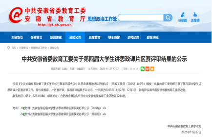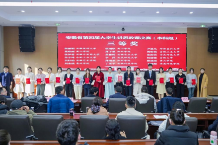 近日,由中共安徽省委教育工委主办的安徽省第四届老员工讲思政课展示活动决赛结果揭晓。公司张韵孜同学主讲,任景清、林初菲、周雨嫣、汤佳豪、高悦等同学共同组成的参赛团队,历经层层选拔,凭借作品《敬敷薪传 青春“皖”歌》荣获省级三等奖,展现了扎实的理论素养、教学能力和昂扬的青春风貌。